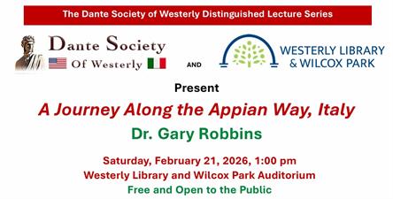 Co-hosted by the Dante Society of Westerly and the Westerly Library.Images