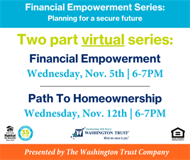 Take control of your financial future with our Financial Empowerment Series, a free two-part virtual workshop open to everyone in the community.